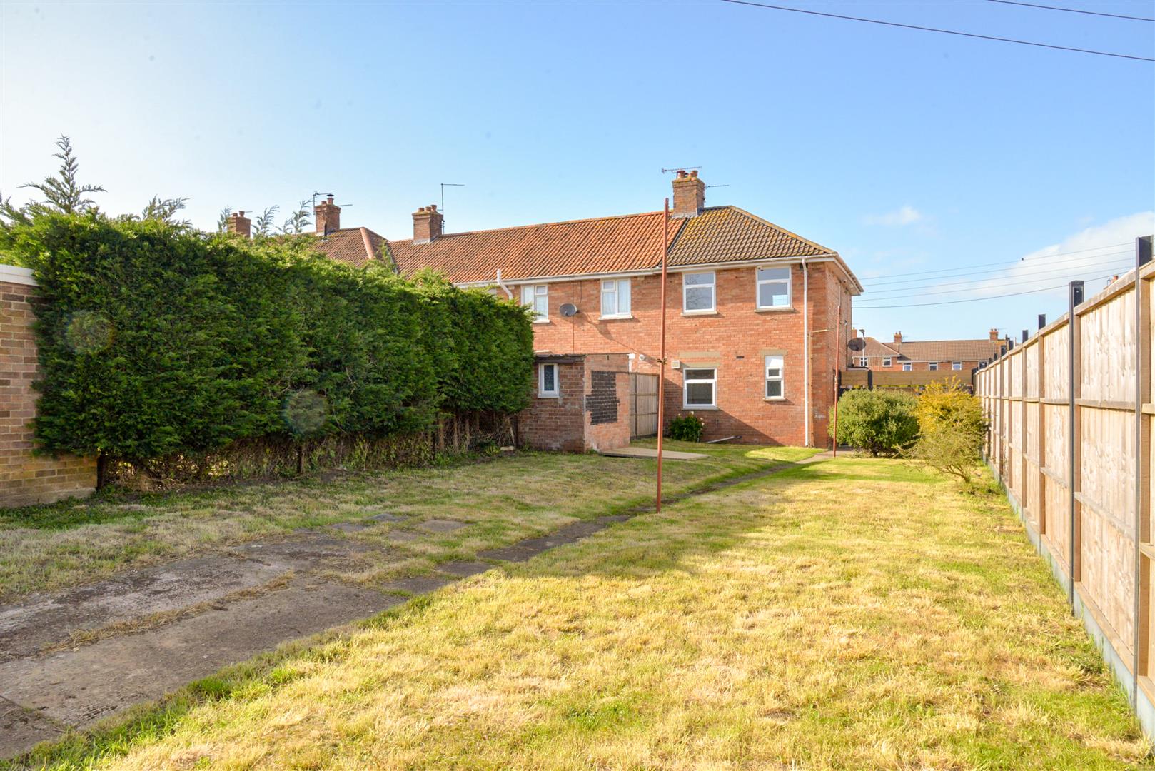 The outside of the property hosts both front and rear gardens. The front garden is mainly lawn with a path to the front door. The rear garden is a very spacious garden comprising mainly lawn and benefitting from a shed and rear & side access.