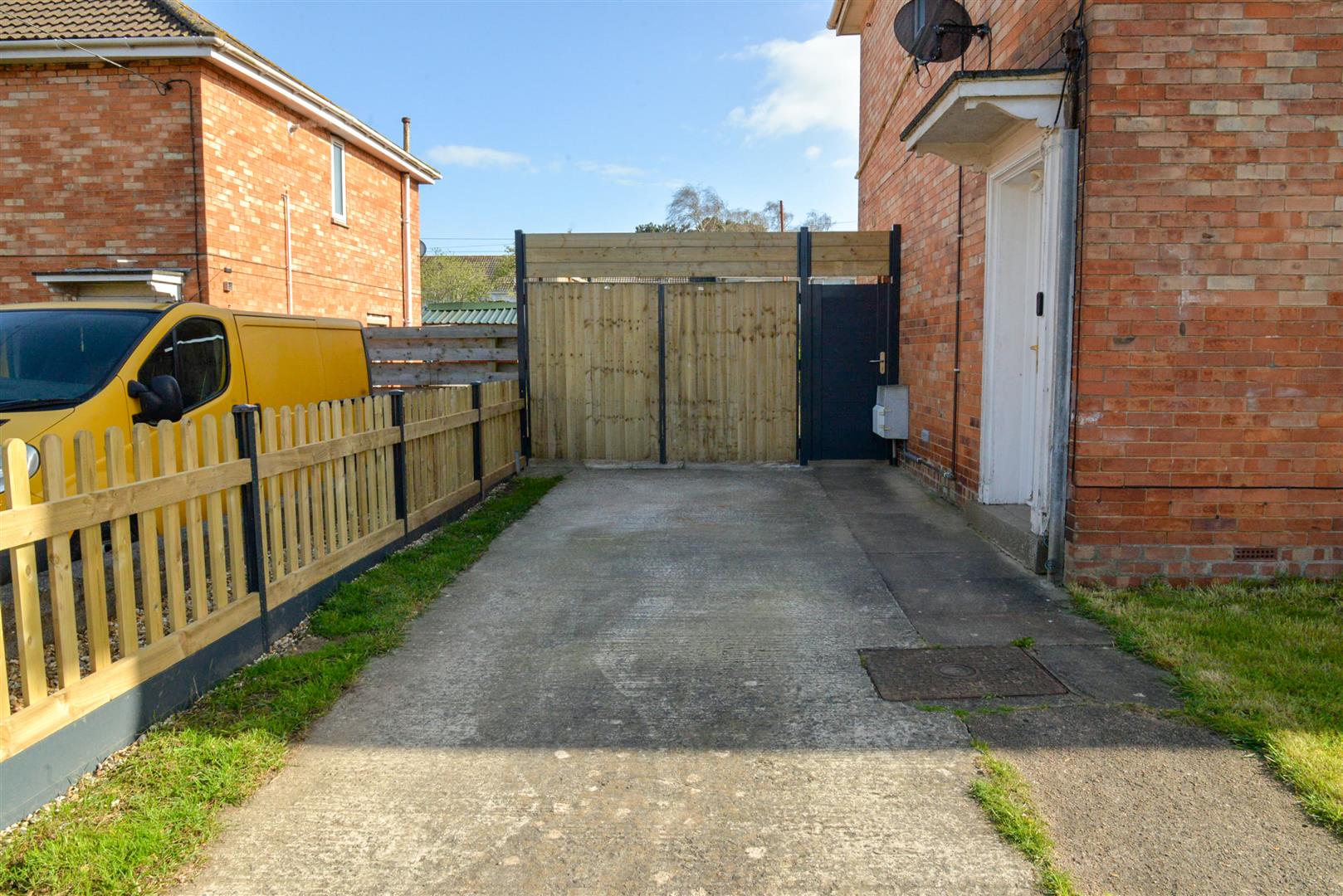 There is a driveway providing an off-road parking space for a vehicle.