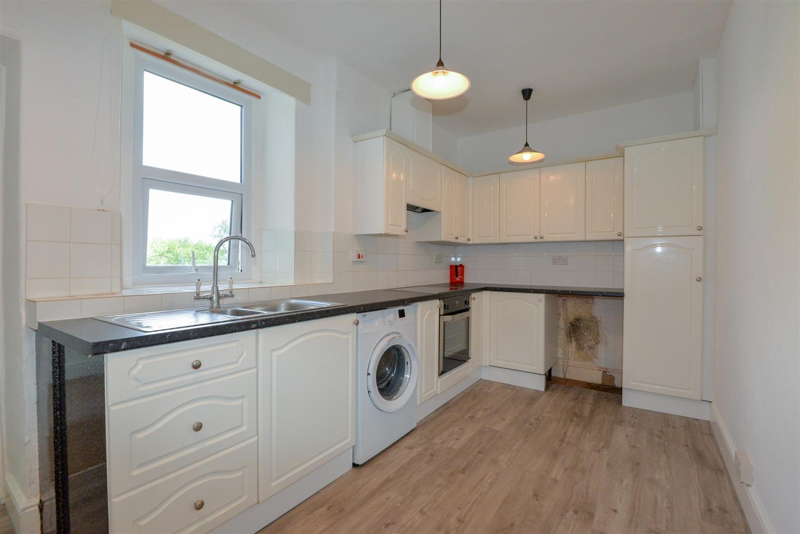 Briefly, the property comprises a hall with large storage cupboard. A well proportioned living room. A kitchen/diner with ample worktop & unit space, space for appliances, hob, oven & cooker hood as well as space for dining. The master bedroom is the bigger of the two overlooking the front of the property. The second bedroom benefits from dual aspect light. A shower room with toilet, basin with storage and shower cubicle.